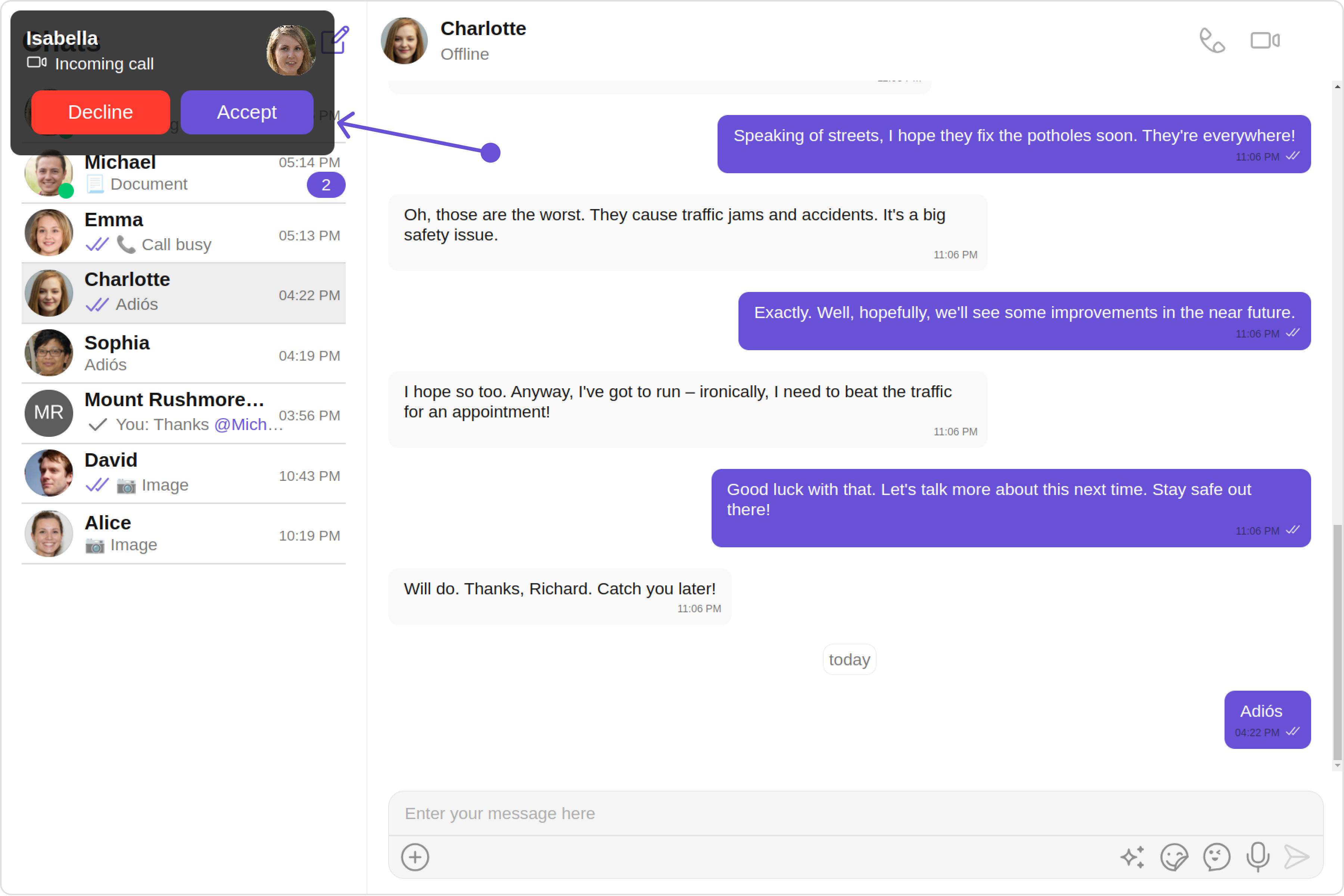 The Incoming Call component of the CometChat UI Kit provides the functionality that lets users receive real-time audio and video calls in the app. When a call is made to a user, the Incoming Call component triggers and displays a call screen. This call screen typically displays the caller information and provides the user with options to either accept or reject the incoming call.