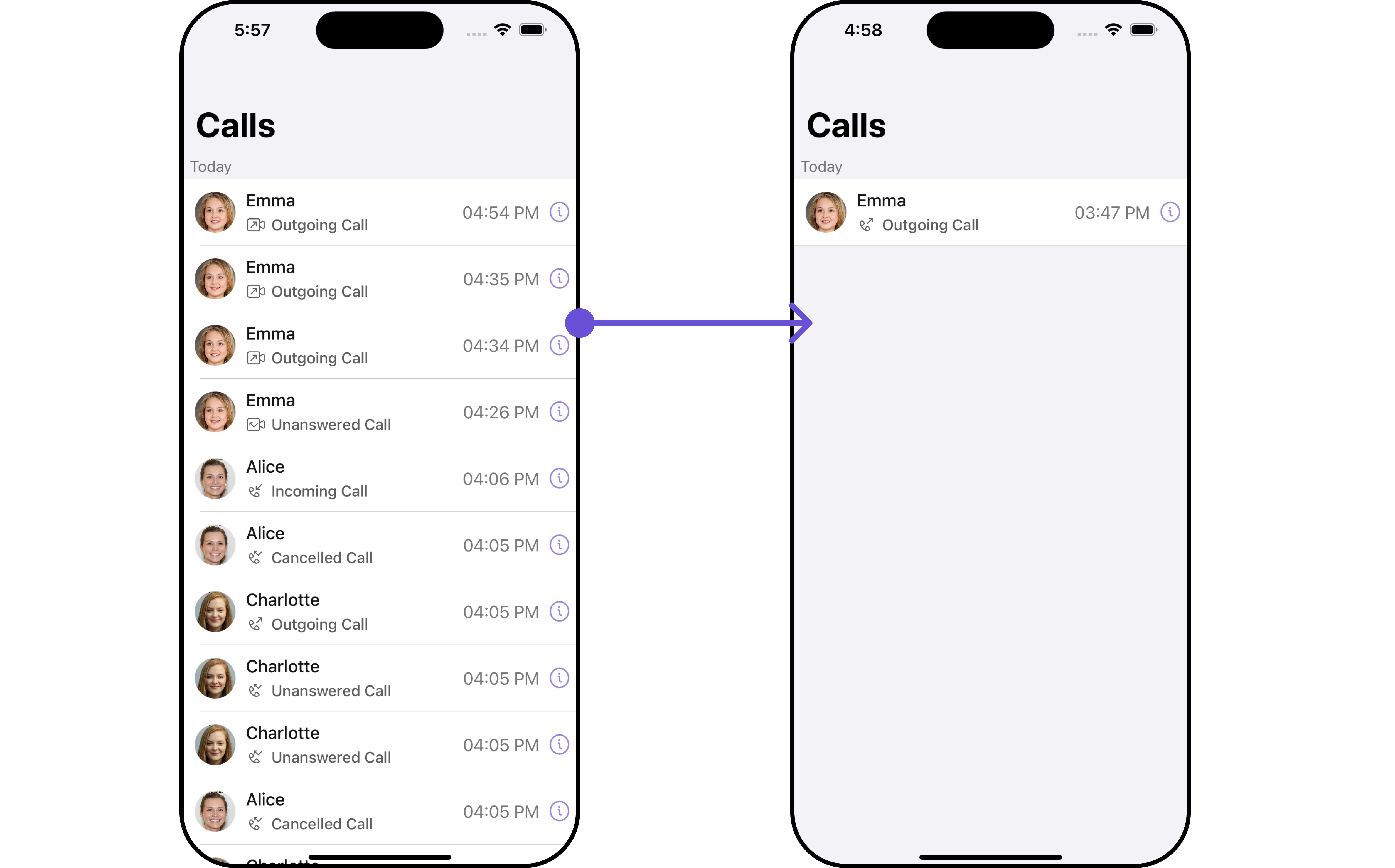 Ensure to pass and present CometChatCallLogsWithDetails. If a navigation controller is already in use, utilize the pushViewController function instead of directly presenting the view controller.