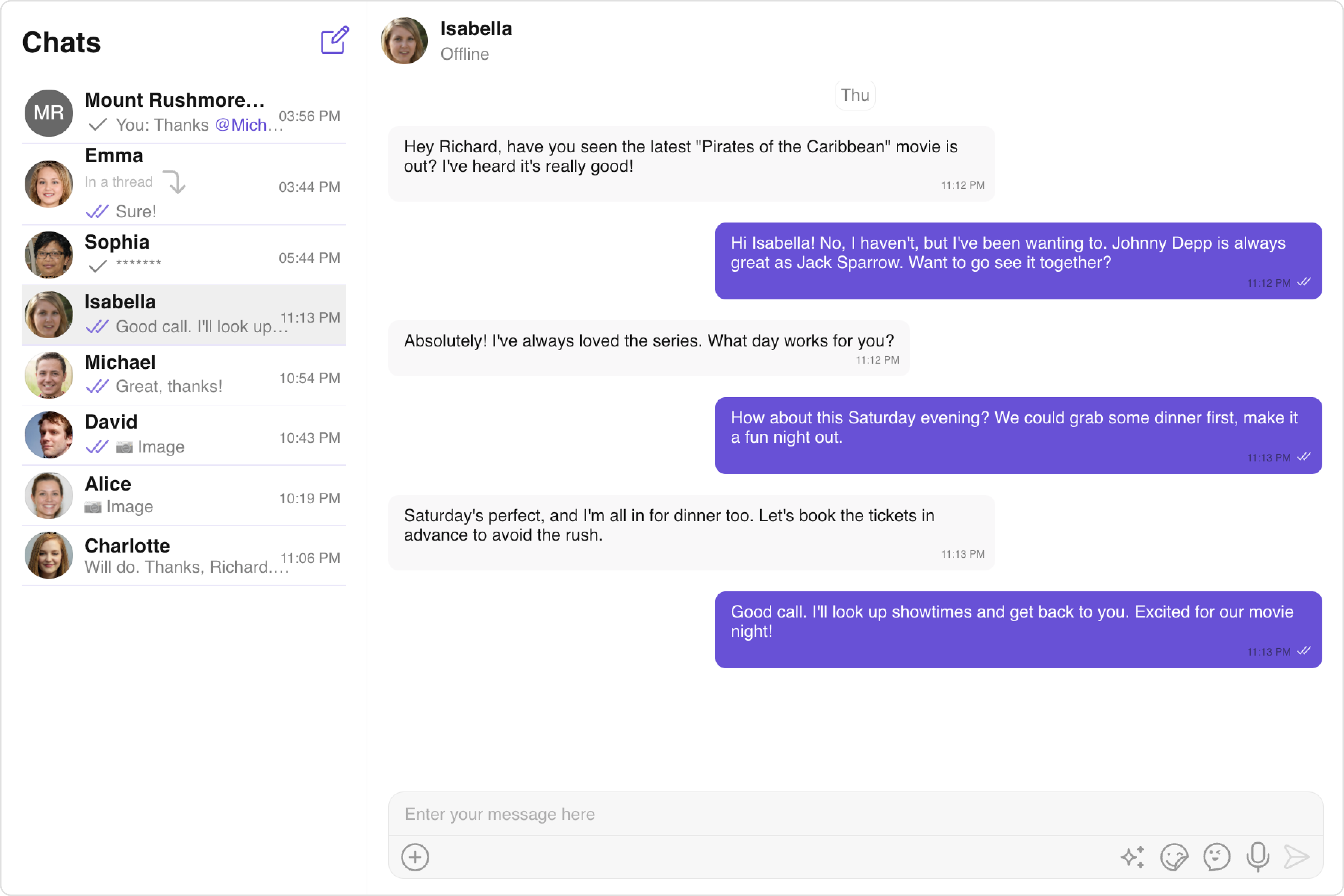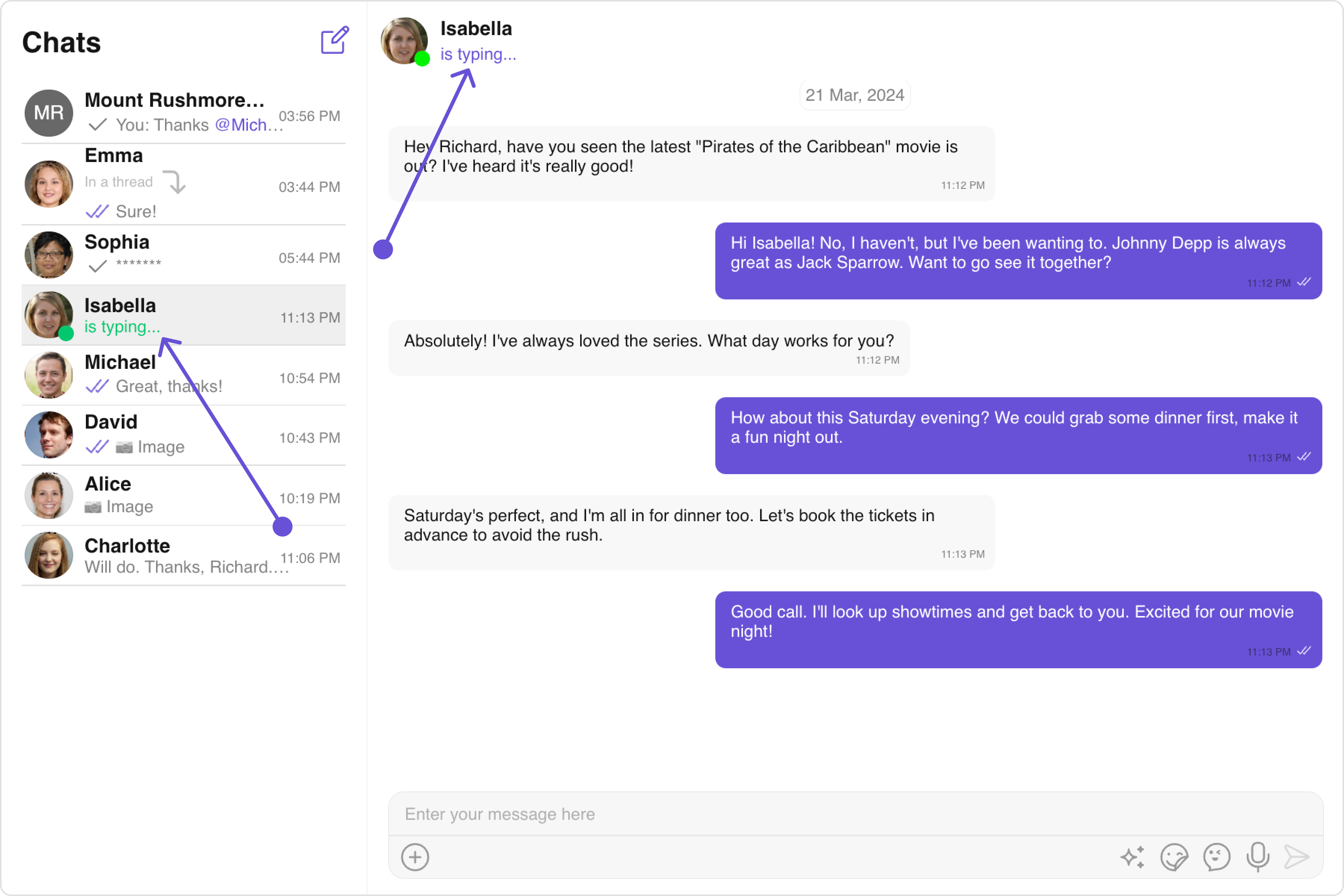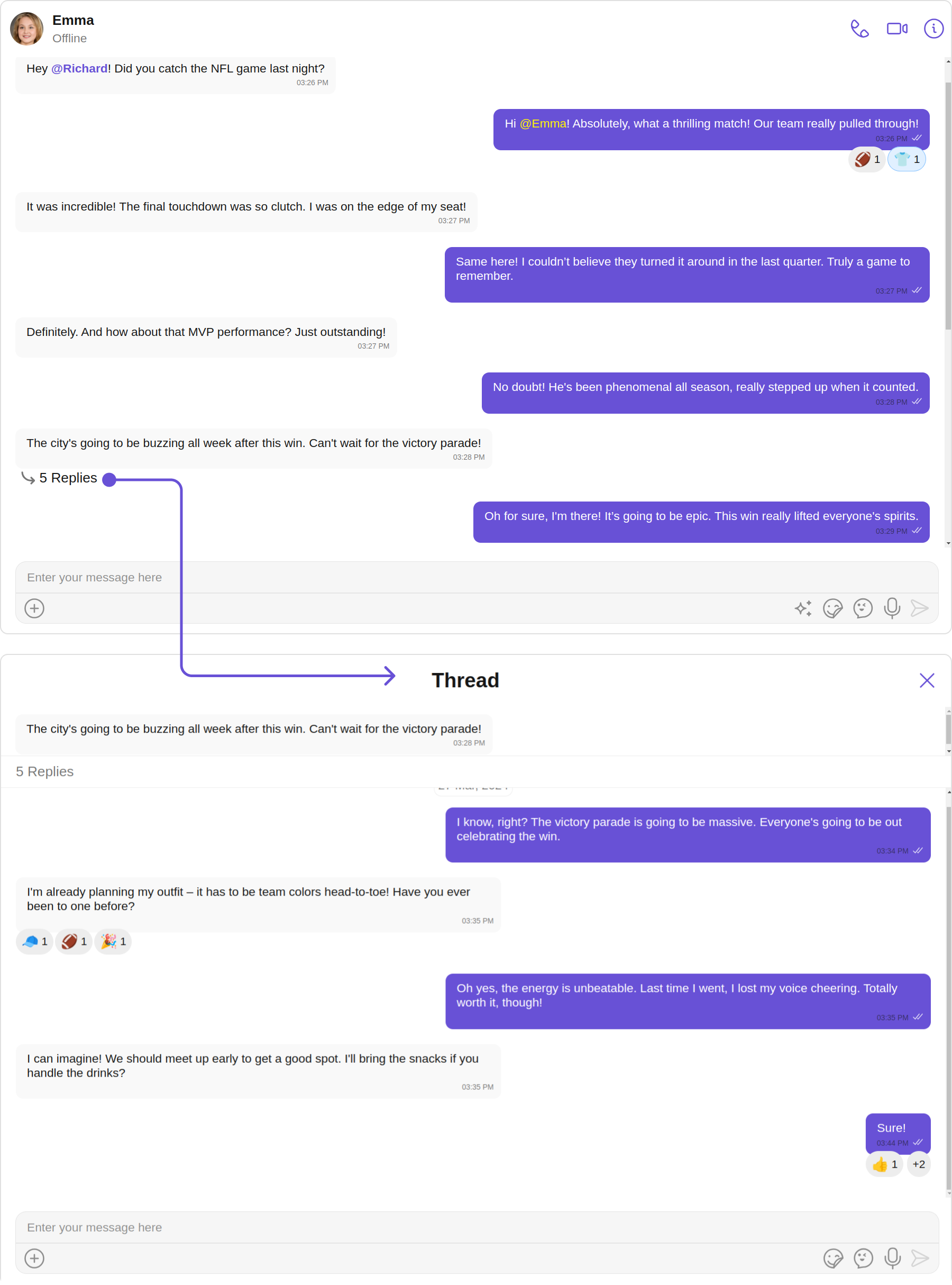 Threaded MessagesThreaded Messages that displays all replies made to a particular message in a conversation.