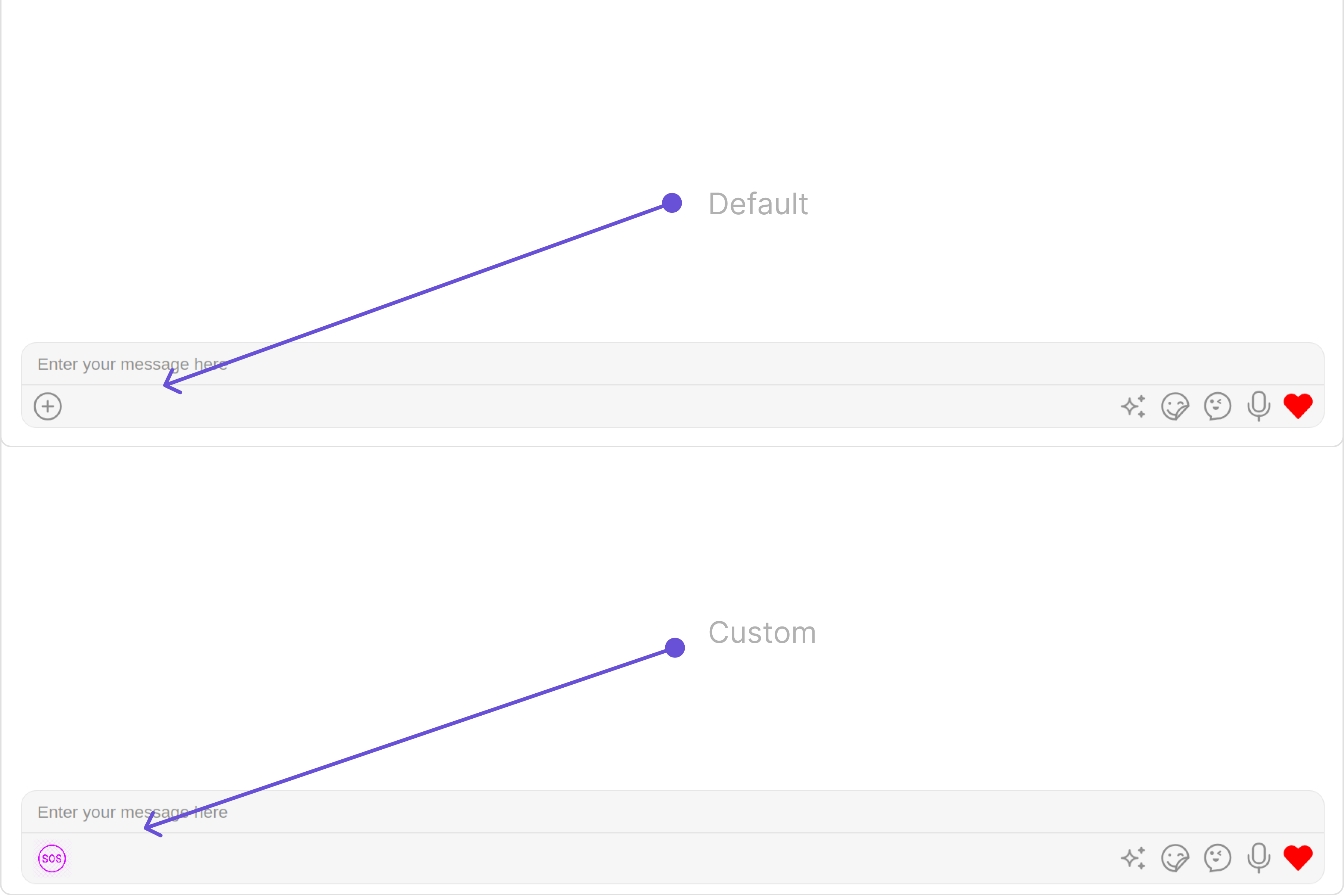 | placeHolderText | Used to set composer’s placeholder text | placeHolderText="your custom placeholder text" |